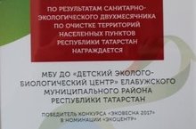 Детский эколого-биологический центр по итогам санитарно-экологического двухмесячника по очистке территорий населенных пунктов Республики Татарстан стал победителем республиканского конкурса "Эковесна 2017" в номинации "Экоцентр"