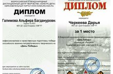 «Җиңү көне «III Бөтенроссия хәрби-патриотик иҗат конкурсы җиңүчесен Черкеева Дарья (укытучы Галимова А.Б.,» рәсем «номинациясе), 1нче урынны алган» Җиңү көне " III Бөтенроссия хәрби-патриотик иҗат конкурсында җиңүчене котлыйбыз. Конкурс Бөек җиңүнең 75 еллыгы уңаеннан «Конкурс - балалар» бөтенроссия һәм халыкара дистанцион иҗат үзәге тарафыннан оештырылды. Барлык конкурсларда катнашучыларга һәм җиңүчеләргә киләчәктә дә иҗади уңышлар телибез!