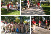 Добровольческая акция «Осенняя неделя добра – эстафета добрых дел» набирает обороты. Сегодня в ходе акции, юнармейцами была проведена расчистка и уборка территории «Пионерского парка», вооружившись граблями, метлами и мешками они сделали его чище и красивее.