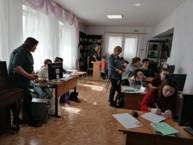 Волшебный кадр 16.03.2020 В детском доме продолжается реализация проекта «Волшебный кадр». Воспитатель Антонова М.А. рассказала о первом этапе создания мультипликационных фильмов (разработка сюжета, подбор необходимого материала, выбор места съемки, изготовление декораций) и познакомила с нетрадиционными способами аппликаций. Балалар йортында «Тылсымлы кадр»проектын тормышка ашыру дәвам итә. Тәрбияче Антонова М.А. мультипликацион фильмнарның беренче этабы турында сөйләде (сюжет эшләү, кирәкле материал туплау, төшерү урынын сайлау, декорацияләр ясау) һәм аппликациянең гадәти булмаган ысуллары белән таныштырды