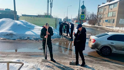 Студенты расчистили подходы к учебным корпусам, внутренние территории и прилегающие тротуары.