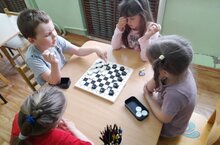 В нашем детском саду дети старшего дошкольного возраста очень любят игру в "шашки". Игра в шашки развивает логическое мышление, смекалку, сообразительность; вырабатывает умение мыслить абстрактно; воспитывает усидчивость, пространственное воображение; развивает способность действовать в уме; самое главное – развивает память. Шашки – это средство для умственного развития детей. Ребенок, обучающийся этой игре, становится собраннее, самокритичнее, привыкает самостоятельно думать, принимать решения, бороться до конца, не унывать при неудачах. Такая деятельность рассчитана на работу в паре и изначально предполагает так же элемент соревновательности, что повышает эффективность развития ребенка. /