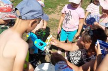 Вода - это жизнь, основа всего и вся на Земле. Чтобы привлечь внимание к весьма актуальному вопросу детей, воспитатели нашего детского сада провели познавательно-развлекательное мероприятие. Нашей целью было; активизация знаний дошкольников о значении воды в жизни всего живого, расширение и закрепление знаний детей о разных состояниях воды, как она важна для всех. Дети узнали, что обыкновенная вода скрывает в себе много загадочного и неизвестного. Воспитатели загадывали детям загадки, играли с ними в веселые игры, устраивали интересные состязания и эстафеты. Итогом мероприятия стало обливание детей из водных пистолетов и вручение сладких подарков. Дети были в восторге и получили огромное удовольствие. /Су-ул тормыш, бөтен нәрсәнең нигезе һәм бөтен җирдә. Балаларны аеруча актуаль сорауга җәлеп итү өчен, безнең балалар бакчасы тәрбиячеләре Танып-белү-күңел ачу чарасы үткәрделәр. Безнең максат иде; мәктәпкәчә яшьтәге балаларның суның бөтен тереклек тормышында әһәмияте турында белемнәрен активлаштыру, балаларның суның төрле халәтләре турында белемнәрен киңәйтү һәм ныгыту, ул барысы өчен дә бик мөһим. Балалар гадәти суның серле һәм билгесез булуын белделәр. Тәрбиячеләр балаларга табышмаклар әйттеләр, алар белән күңелле уеннар уйнадылар, кызыклы ярышлар һәм эстафеталар оештырдылар. Чараның нәтиҗәсе булып балаларга су пистолетларыннан су сибү һәм татлы бүләкләр тапшыру булды. Балалар бик канәгать калдылар һәм зур канәгатьлек алдылар.