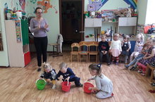 Вспомнили и поиграли в подвижные игры "У медведя во бору", "Мишка косолапый", "Медведь и пчелы", "Мишка, мишка, хватит спать. ", "Найди своего Мишку". Дети с удовольствием протанцевали забытый танец "Мишка с куклой громко топают. " Каждый ребенок смог выбрать и поиграть с медведем.
