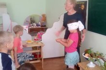 Работая с детьми-дошкольниками приходится проявлять выдумку в подаче изучаемого материала. Работая по ФГОС, мы с детьми знакомимся с овощами не только по картинкам. Знакомим детей с внешним видом, со вкусом. Даем детям представления, что овощи растут на грядках в земле. Внутри каких овощей есть семена, внутри каких нет. И конечно пробуем их на вкус\Мәктәпкәчә яшьтәге балалар белән эшләгәндә өйрәнелә торган материалны тапшыруда уйлап табу зарур. ФГОС буенча эшләгәндә без балалар белән рәсемнәр буенча гына танышмыйбыз. Балаларны тышкы кыяфәт, зәвык белән таныштырабыз. Балаларга яшелчәләрнең җирдә түтәлләрдә үсүен күзаллыйбыз. Эчендә нинди яшелчәләр бар, эчендә нинди юк. Һәм, әлбәттә, аларны тәмле итеп алабыз.