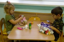 Игра детей со "строительным" материалом.