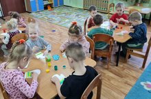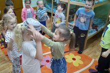 ООД барышында без балалар белән "Рукавичка" рус халык әкияте белән таныштык. Балалар әкият геройларына бик үтеп керделәр, балчыкларын калдырырга теләделәр, әмма тәрәзә артында ярыклар бар иде. Бераз уйланганнан соң, без һәр геройны үз кабинасы буенча ясарга булдык. "Йортлар" ясаганда техника-аппликация кулланырга карар иткәннәр. Һәркем үз теләге белән килде. "Әкият" бизәкләрен кулланып, без үз эшебезне тәмамладык. Һәркем үзенең матур йортын күрсәтте. Әзер эшләрне җыйгач, һәр җанвар күңеленә хуш килгән йортны сайлый алсын өчен, без аларны өстәлгә куйдык. Үз эшләренең нәтиҗәләрен күргәч, балалар бик канәгать калдылар. Кич белән, әти-әниләр килгәч, чишенү бүлмәсендә без бүген Урман кешеләренә ничек ярдәм итүебез турында сөйләшми дә калдык.