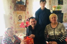 В связи с приближающимся праздником учащиеся школы совместно с главой поселения Бахметовым А.Б. и работниками СДК посетили тружеников тыла Сухорукову В.А. и Понамареву З.С.. Вручили подарки от президента РТ и прикрепили георгиевские ленточки.