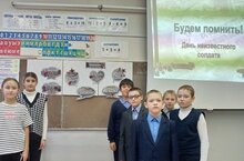 Бүген 3 нче декабрь көнне, безнең мәктәптә “Исемең билгесез, батырлыгың үлемсез”, билгесез солдат көненә багышланган дәрес узды. Дәреснең төп максаты үсеп килүче буынга ата- бабаларының бөек батырлыгын искә төшерү иде һәм күп кенә геройларның исемнәре билгесез булып калса да, дөнья аларның батырлыкларын хәтерли. Балалар бу көннең тарихын белделәр, һәлак булган Билгесез солдатларны бер минут тынлык белән искә алдылар.