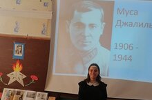Сегодня в школе состоялось литературное мероприятие « Герой поэт- Муса Джалиль », посвященное дню рождения М.Джалиля. На мероприятии учащиеся смотрели презентацию, прочитали выбранные ими стихи. В конце отвечали на вопросы викторины.