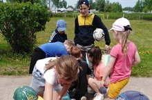 Сегодня в лагере прошли соревнования под девизом «Мы одна большая семья». Программа «Веселых стартов» была довольно насыщенной. Командам были предложены занимательные конкурсы с бегом, прыжками, эстафеты с мячами, кеглями и обручами, где они смогли проявить свои спортивные, умственные способности и навыки. Также ребята вспоминали и играли в старые добрые игры «Классики», «Прыгалки».