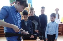 В рамках месячника гражданско-патриотического воспитания в школе состоялось соревнованиепо сборке и разборке автомата. Победу одержал Ключников М. с результатом 52.1.