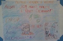 Учащиеся школы приняли активное участие в республиканской акции «108 минут вместе с Юрием Гагариным». Ребята посмотрели кадры кинохроники биографии Юрия Гагарина, участвовали в спортивном соревновании и конкурсе рисунков.