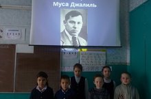 В 1-2 классах прошел классный час, посвященный Мусе Джалилю. С помощью слайд-презентации «Поэт- герой Муса Джалиль» ребята узнали об учебе, творчестве, суровых фронтовых буднях поэта, о страшном времени, проведенном в фашистских застенках концлагерей, в которых единственным оружием Мусы Джалиля были его стихи.