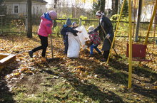 Шимбә көнне барлык бакча хезмәткәрләре җыелыпшып территориябезне көзге яфраклардан арындырдык.