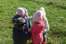 Рәхәтләнеп уйныйбыз 20.10.2016 Салкын, яңгырлы көннәрдән соң болытлы булса да, явымсыз көннәр килде. Нәниләр белән урамда рәхәтләнеп төрле йөгерек: "Казлар, казлар", "Ал кирәк, гөл кирәк", "Буяу сатам", "Әбәкле", "Самолеты", "Хитрая лиса" уеннарын яратып уйныйбыз.