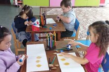 Рус теле шөгылендә "Көз" темасы дәвам итә һәм ныгыту йөзеннән күмәк эш "Көзге урман"ны ясадык./ На занятие русского языка проходим тема "Осень".Закрепление темы общая работа "Осенний лес".