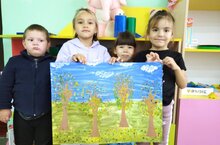 Бүген рәсем,кисеп-ябыштыру шөгылендә көзге агачлар ясадылар./ Сегодня на занятиях рисование и апплекации дети сделали осенние деревья.
