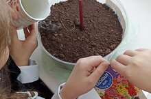 Учащиеся 2Б класса приняли участие в подготовке посадки цветов для пришкольного участка.