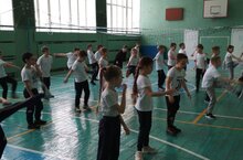 1 нче урта мәктәпнең 3 "Б"сыйныфы укучылары физкультура дәресләрендә бик актив шөгыльләнәләр, ә дәрес разминка белән башлана.