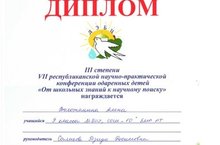 Поздравляем Воложанину Алену - призера республиканской научно-практической конференции 30.01.2018