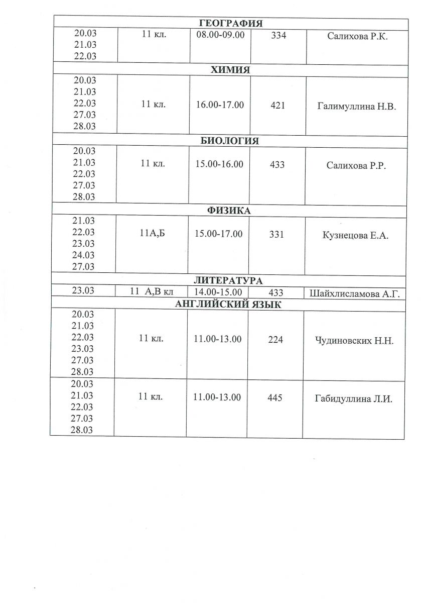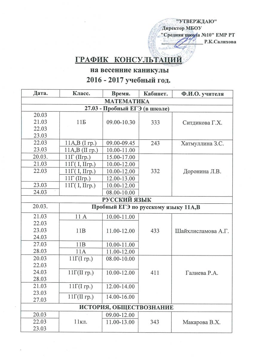 Графики консультаций по подготовке к ОГЭ и ЕГЭ во время весенних каникул