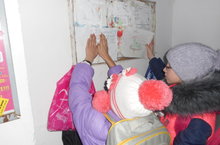 В преддверии праздника День защитника Отчества учащиеся начальных классов оформляют поздравительные открытки и развешивают их по подъездах микрорайона.