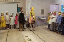 В 1е классе на празднике "Осенины - осени именины" ребята читали стихи, пели песни, танцевали. В гости к ним пришла сама волшебница Осень, которая, как и полагается, в конце праздника всех ребят угостила своими дарами: красными наливными яблочками.