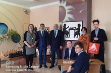 Депутат Государственного Совета Республики Татарстан шестого созыва от фракции КПРФ Мансур Зайдуллович Гарифуллин вместе со своим помощником Григорьевым Артëмом Леонидовичем посетили нашу школу с подарками для расширения шахматной зоны школы новым шахматным инвентарём. КПРФ фракциясеннән алтынчы чакырылыш Татарстан Республикасы Дәүләт Советы депутаты Мансур Зәйдулла улы Гарифуллин үзенең ярдәмчесе Григорьев Артем Леонид улы белән 10 нчы гомуми белем бирү мәктәбендә булдылар һәм шахмат зонасын яңа шахмат инвентаре белән киңәйтергә ярдәм иттеләр.