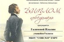 Поздравляем ученицу 9М класса Галимову Ильсину с победой во Всероссийском конкурсе в сетевой акции-челлендже «Стихи на кончике кисти», приуроченной к 220-летию со дня рождения А.С. Пушкина.