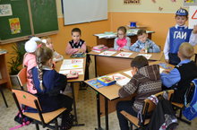 К первоклассникам на занятие пришел Мальчик из «Школы светофорных наук» и рассказал о значении дорожных знаков.