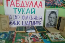 12 нче апрель көнне мәктәп китапханәсендә татар халкының бөек шагыйре Габдулла Тукайның 130 еллык юбилеена багышлап, киаплар күргәзмәсе оештырылды.Балалар Г.Тукайның "Шүрәле" һәм "Су анасы" әкиятләрен бик кызыксынып укыдылар,рәсемнәрен карадылар. -