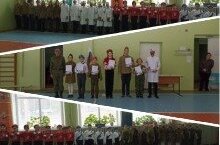 В честь Дня Защитника Отечества, в школе прошел конкурс - смотр строя и песни. Ученики 2-9-х классов с трепетом готовились к этому мероприятию. Чеканя шаг, ребята пели строевые песни. Волнение не помешало справиться с трудной задачей: ученики четко и правильно выполнили все упражнения. Строгое жюри оценивали внешний вид, строевую выправку, исполнение строевой песни, умение командиров отрядов отдавать рапорт, правильность выполнения команд, строевой шаг прохождения торжественным маршем, синхронность. Уверенно и бойко командиры сдавали рапорт, и столь же уверенно отдавали команды своим подчиненным. Какая же гордость охватывала когда, чеканя каждый шаг с песней, проходили отряды. Огромное спасибо хочется сказать учителю физической культуры Моргачёву Е.А. и всем классным руководителям, которые не жалели времени и сил, и подготовили ребят к смотру. Мы гордимся нашими учениками, что на смену отцам и дедам растет прекрасное поколение новых полководцев! От всей души поздравляем победителей!