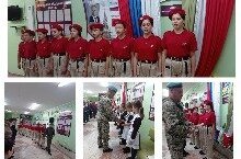 Перед началом торжественной присяги с напутственными словами выступила заместитель директора по ВР Лобанова Е.А.. Поздравив присутствующих со значимым событием, Елена Александровна выразила уверенность в том, что в ряды «ЮНАРМИИ» будут вступать все больше ребят – умных, спортивных, знающих и понимающих историю своей страны, любящих родной край и нашу большую Родину – Россию. На мероприятии присутствовал почетный гость, сержант воздушно-десантных войск Гурьянов Алексей Сергеевич. Он поздравил ребят и пожелал мальчишкам и девчонкам быть надежными защитниками своей страны, трудиться во славу России.Ответственный за организацию работы «Юнармейского отряда», учитель ОБЖ Моргачёв Евгений Александрович рассказал ребятам о том, что такое «Юнармия».