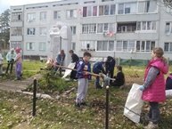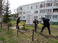 В преддверии Дня Победы обучающиеся МБОУ « Основная школа №11» приняли участие в уборке памятника погибшим односельчанам в годы ВОВ. Предварительный визит на место определил обширный фронт работ: очистка плитки и прилегающей территории от мусора, уборка сухой листвы, уничтожение сорняков и поросли. Учащиеся школы ежегодно, добросовестно ухаживают за территорией памятника.