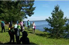 Сегодня дети вместе с лагерем труда и отдыха ходили в поход в сосновый лес