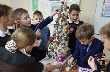 Ребята 3 класса "А "сделали елку своими руками. На поделку ушло 120 шишек и 128 игрушек! Красавица встречает всех в фойе школы. 3 нче сыйныф укучылары " А " үз куллары белән чыршы ясадылар. Эшләнмәгә 120 күркә һәм 128 уенчык киткән. Чибәркәй барысын да мәктәп фойесында каршы ала.