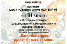 Среди отрядов ФОРПОСТ прошел конкурс самодеятельности "После боя сердце просит музыки вдвойне". Наша команда заняла третье место. Поздравляем!/ ФОРПОСТ отрядлары арасында "Сугыштан соң йөрәк музыка икеләтә сорый"дип исемләнгән үзешчән бәйге узды. Безнең команда өченче урынны алды. Котлыйбыз!