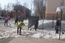 Сегодня коллектив нашей школы вышел на общегородской субботник по уборке снега.
