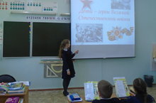 Ученики 3Б класса побывали в гостях у первоклассников. Ребята приготовили сообщения о детях-героях войны: Марат Казей, Леня Голиков, Зина Портнова. Третьеклассники рассказали, как маленькие герои большой войны сражались рядом со старшими - отцами, братьями и каким огромным может стать маленькое детское сердце,когда разгорается в нем любовь к Родине и ненависть к её врагам. -