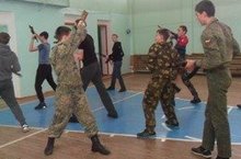 Пока учителя повышают квалификацию, учащиеся кадетских классов не сидят без дела. Они оттачивают свое мастерство по рукопашному бою и самообороне под руководством офицеров - воспитателей.