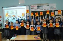 1-2 классы с удовольствием смотрели видеоролики «Наша страна — Россия», 3-4 классы « От поколения к поколению», ребята 5-7 классов рассуждали на тему «Что мы родиной зовем». С удовольствием и интересом слушали песню « С чего начинается Родина» , 8-9 классы разговаривали о жителях большой страны России, 11 класс беседовали на тему :» Мы сами создаем свою Родину». Все интересные мысли ребята записывают в тетрадях.