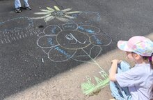 В пришкольном лагере "Орлёнок" прошёл конкурс рисунков на асфальте "Ромашка", приуроченный к Дню семьи, любви и верности.