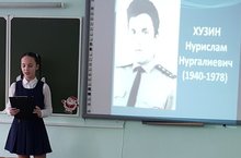 Габидуллина Амира, обучающаяся 6а класса - победитель школьной НПК «В жизни всегда есть место подвигу», посвященной Дню Героев Отечества. Амира подготовила интересный материал о бывшем милиционере Хузине Нурисламе Нургалеевиче,уроженце села Морты, погибшем от руки преступника.