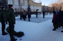 9 декабря традиционно в нашей школе проводится много мероприятий, посвященных Дню Героев Отечества. Одно из таких событий-принятие клятвы кадет- прошло сегодня в сквере Героя А.Н.Епанешникова. На мероприятии присутствовали почетные гости: ветеран милиции, подполковник СофроновЭ.А. и участник ликвидации Чернобыльской АЭС майор в отставке Киселев С.В. В заключении кадеты 9к класса возложили гирлянду к бюсту Героя РФ Епанешникова А.Н.и прошли торжественным маршем.