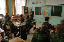 16 -18 марта в школе прошли уроки Мира, посвященные 5-летию воссоединения Крыма и Севастополя с Россией. Ребята кадетских классов встретились с подполковником ФСБ в отставке Кармановым П.И.16 нчы марттан 18 мартка кадәр мәктәптә Тынычлык дәресләре үтте. Кадет сыйныфы укучылары ФСБ подполковнигы П.И.Карманов белән очраштылар