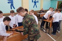 В преддверии празднования Дня Защитника Отечества в школе прошел смотр строя и песни среди 5-6 классов. Все ребята очень хорошо подготовились, но строгое жюри в составе ветерана ВОВ Горбуновой Л.И. и ветерана МВД Зарипова З.Р. распределили места таким образом 1 место -6Б класс, 2 место- 5а и5б классы, 3 место -6а класс.