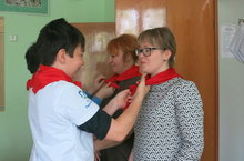 Сегодня 19 мая вся наша страна отмечает 95 годовщину создания пионерской организации имени В.И.Ленина. . На переменах по школе раздавались пионерские песни, а члены отряда волонтёров поздравили педагогов, кто был участником пионерского движения, и повязали им нашею пионерские галстуки