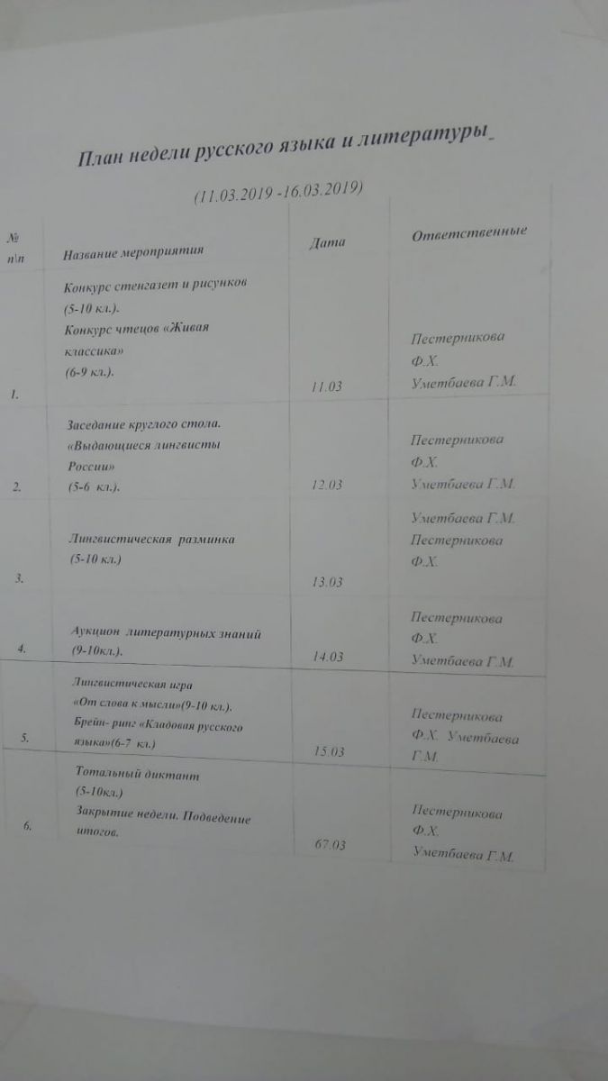 Узган атнада (11.03-16.03) безнең мәктәптә рус теле һәм әдәбияты атналыгы үткәрелде. Төрле интеллектуаль уеннар, викториналар һәм чаралар оештырылды. План.