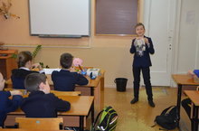 5 нче А сыйныф укучылары " Минем гаиләм герое". Бүген Кашапов Ратмир үзенең бабасы Маратканов Александр Григорьевич турында сөйләде, ул блокадалы Ленинградта яшәүчеләргә тормыш юлы буенча азык-төлек продуктлары белән тәэмин итте.